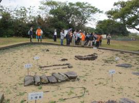 「中ノ浜遺跡」は響灘沿いの砂丘に営まれた弥生時代を代表する集団墓地です。これまでの発掘調査で100体超の人骨が発見されています。また、川棚芝居にまつわる松谷の若宮と若嶋座祇園社もめぐます。