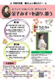 市民に人権問題に対する正しい認識を広め、日常の暮らしにおいて、お互いを認め合う人権感覚を培うため「暮らしと人権セミナー」を開催します。シンガーソングライターちひろ氏に、金子みすゞの詩を中心に作曲した歌などで、「みんなちがってみんないい」の心で人権を尊重する大切さを講演いただきます。