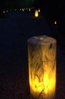 青龍をまつる松尾神社も水辺の小径からの参道を300個の灯ろうコップで照らし出します。